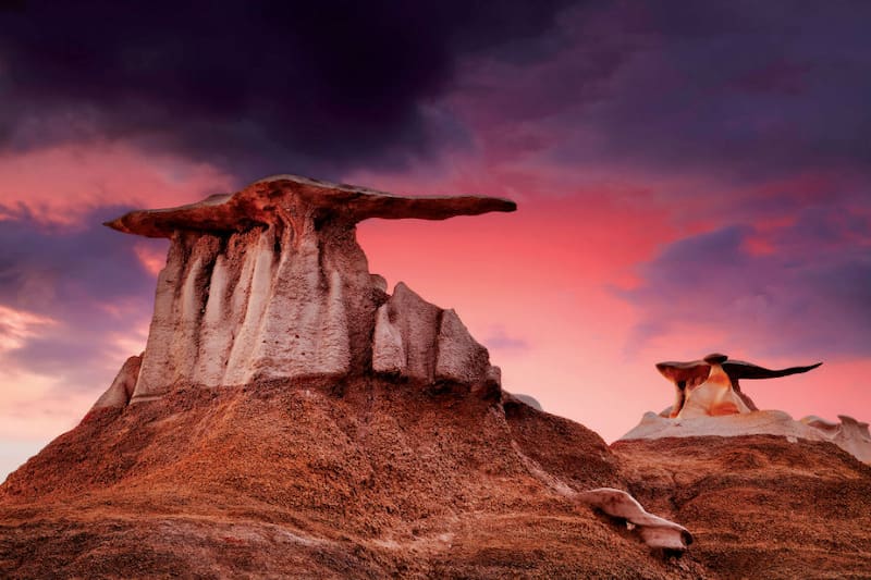 Uno de los destinos imperdibles para los amantes de la aventura es el desierto Bisti/De-Na-Zin en el estado de Nuevo México, en el suroeste de EE.UU.