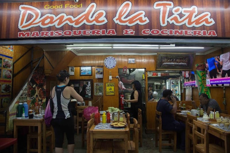 Donde La Tita está en el local 107 de La Vega Chica, el recinto ubicado entre el Mercado Tirso de Molina y La Vega Central y conocido por sus cocinerías, con platos abundantes y a buen precio,