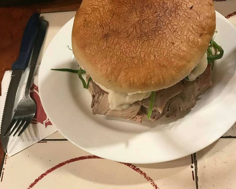 Imposible quedarse sin comer su "churrasco italiano", ese hecho con 300 gramos de posta negra de corte bien fino, tomate, bastante palta y su también tradicional mayonesa casera. Todo en un esponjoso y a la vez crujiente pan frica que es perfecto para humedecer con el juguito de la carne ($ 6.200 en el local, $ 7.130 en Glovo).