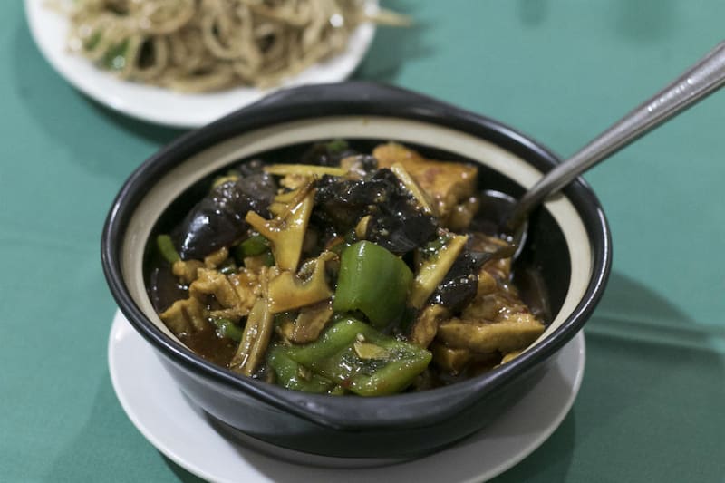Si eres vegetariano, pide el "tofu frito" ($ 5.800) que también viene que el punto de picante que digas y es un plato sabrosísimo.