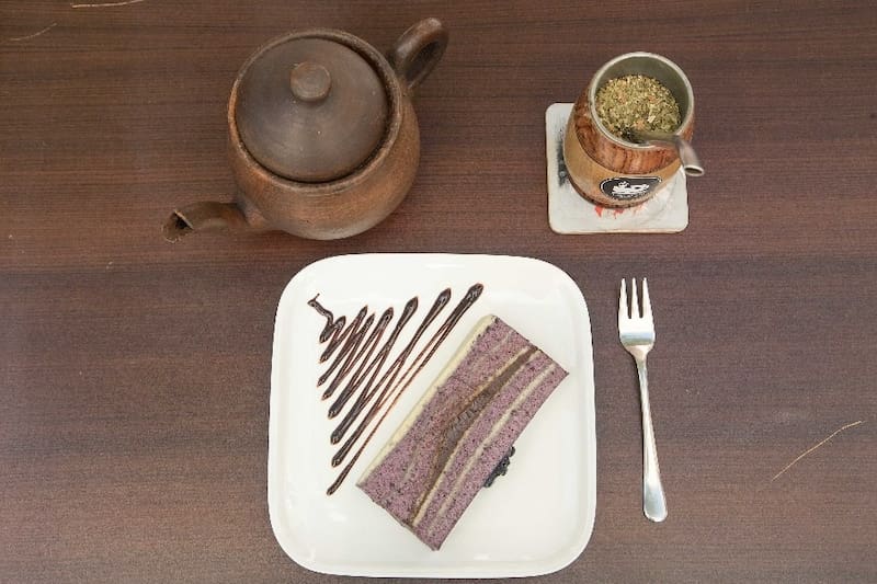 Para acompañar, ahí tienen café de trigo, maqui y arándano, que se tuestan con el método mapuche y no tienen cafeína. O, si prefieres, puedes pedir un mate, que corre por cuenta de la casa.