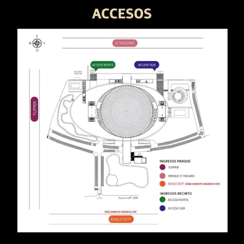 Al parque puedes ingresar por Tupper directamente y quienes tienen ticket para el sector VIP pueden acceder por Av. Beaucheff.