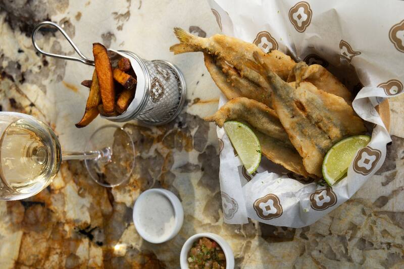 Otra podrían ser las almejas frescas ($ 11.000), recién sacadas del acuario del lugar y gratinadas con queso parmesano; o los pejerreyes fritos ($ 14.000), que son de Boyeruca y llegan bien crujientes, con chips de papas y papa camote, pebre y lactonesa.