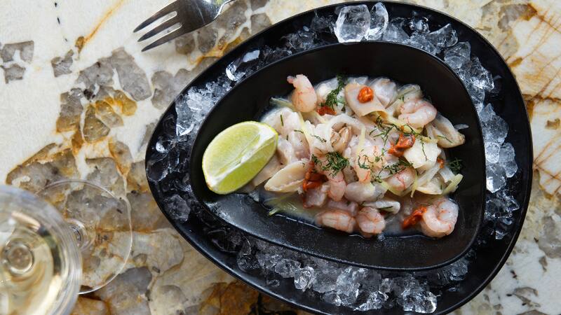 También el mariscal ($ 14.500), que es una selección de mariscos frescos, como chochas, machas, piure, camarón nacional y mero de Juan Fernández, aliñado con limón, cilantro y ají verde. ¡Delicioso!.