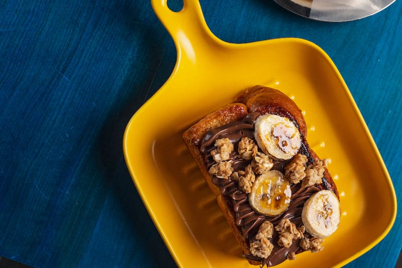 Además de una opción dulce, que pueden ser Palmeritas con manjar; o una Cookie con maní y plátano caramelizado.