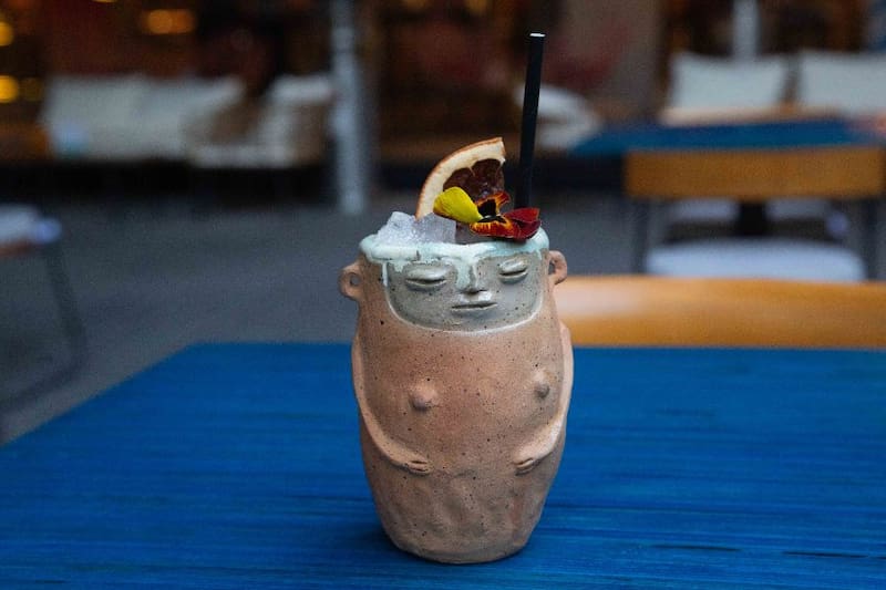 Una experiencia que parte con la coctelería de la casa, con opciones frescas, dulces o con burbujas. Dentro de la gama más fresquita, uno delicioso es el lawen ($ 11.000), con gin Pajarillo, que es uno chileno, y que lleva además jugo de pomelo, syrup lawen y un toque de ginger ale. Llegará en un vaso Rag Mapu, cargado de valores y saberes ancestrales.