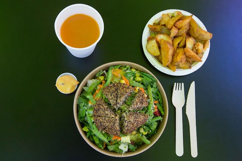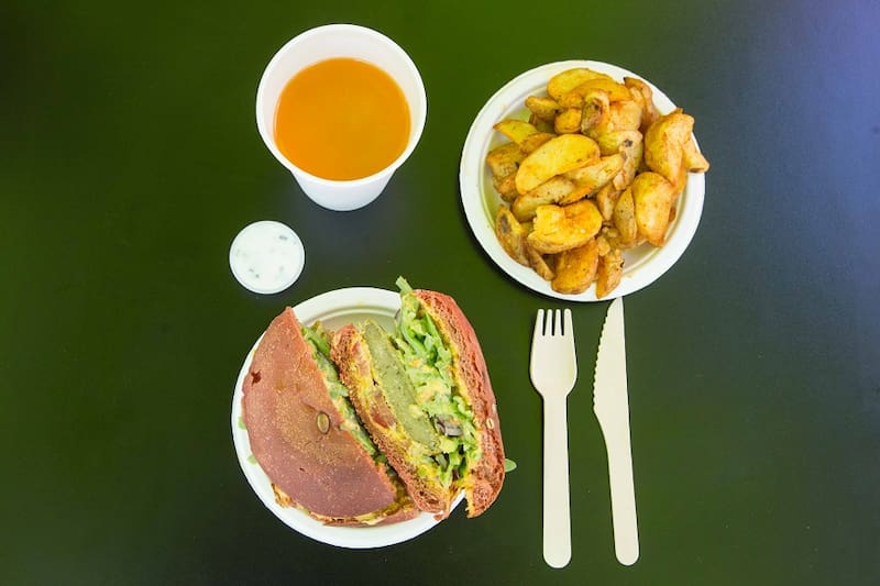 Ojo, que en Mammaterra usan cubiertos de bambú, platos de caña de azúcar biodegradables, vasos de polipapel reciclables y no hay bombillas plásticas.