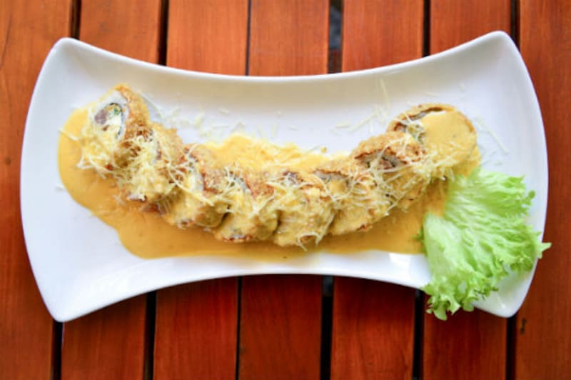 ¿Dónde terminar un paseo por San Miguel? En el Okita, el bar y restaurante de moda en la comuna. Enclavado en otra casona típica de la zona, con terraza y lejos del ruido, aquí lo que mandan son los sabores nikkei, la mezcla de lo peruano y lo japonés. Hay todo tipo de sushis, calientes y fríos, tradicionales y de estilo nikkei. Pero si va un martes, entre 7 PM y 10 PM, se encontrará con un sushi buffet, donde puede comer todo lo que quiera, entre 18 variedades, pagando $ 8.990. Le irán trayendo de cinco rolls, y puede pedir más a medida que los vaya terminando. Ojo, que son bien contundentes. Probará, por ejemplo, el doble bife, un roll frito y envuelto en láminas de filete, bañado en salsa de anticucho y panko.