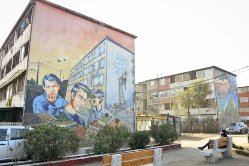 Un imperdible es el primero, el que homenajea a un ícono de la comuna, el grupo Los Prisioneros: en Av. Departamental con Pasaje 2 están retratados González, Tapia y Narea, en medio de una feria con los mismos blocks de fondo. ¿Otro destacado? Resignación, en Tristán Matta con Pasaje 4, pintado por Inti, donde un “ekeko” con adornos autóctonos, plasma la diferencia entre el día y la noche.