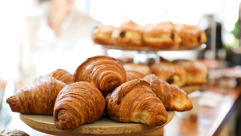 Y donde ya de entrada abre el apetito con una vitrina cargada de bollería y pastelería adictivas, que son parte del ADN de este lugar. Como baguettes, croissant, rollos de canela y galletones.