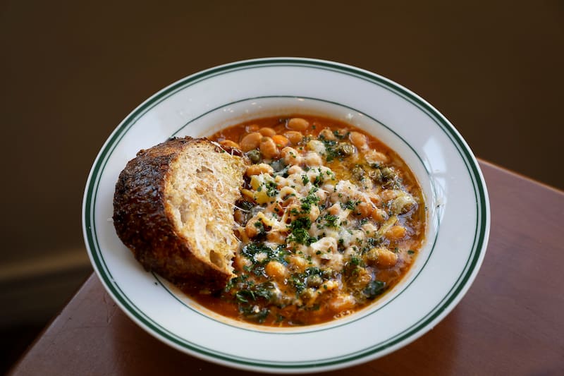 Entre sus platos de fondo destacan el menestrón ($ 7.500), un caldo atomatado, con porotos rubí, verduras y pasta fresca; y la punta paleta ($ 9.200), grillada y jugosa, con salsa de harissa y mantequilla, que puedes acompañar de deliciosas papas fritas ($ 3.500).