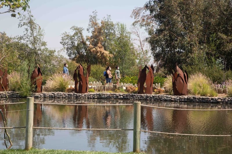 Esta diversidad de especies, además, se nutre de una laguna de cerca de 6 mil m2, a la que llegan aves, como patos colorados, cisnes de cuello negro o garzas, que las podrás ver entre las flores de loto que surgen naturalmente.