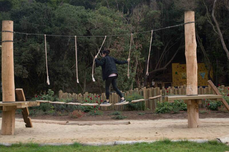 Si avanzas cerro arriba te encontrarás con una zona con más de diez casitas en los árboles. Deberás cruzar unos puentes para llegar hasta allá, y desde su interior tienen vista al parque.
