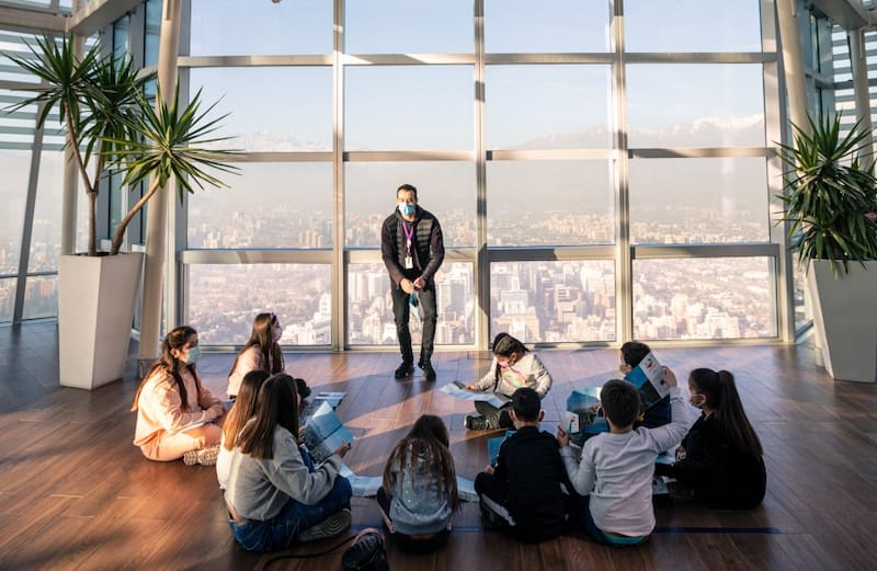 También hay un panorama familiar de alto vuelo , el mirador Sky Costanera, que se ubica en los pisos 61 y 62 de la Gran Torre Santiago, la más imponente de las construcciones del complejo Costanera Center.