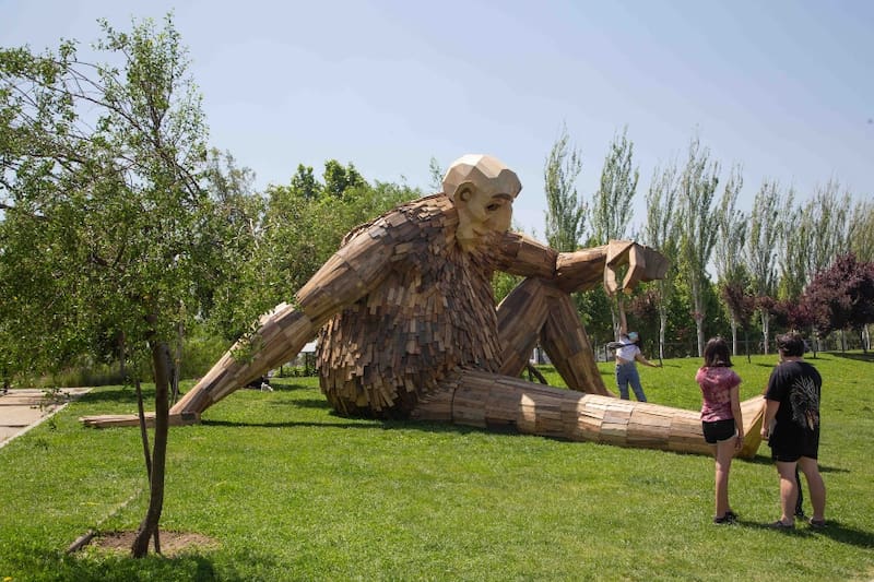 Así, cada vez que vayas a pasear a este pulmón verde a orillas del Mapocho podrás apreciar y hasta tocar esta creación del danés Thomas Dambo, hecha de madera reutilizada y que mide cinco metros de largo.