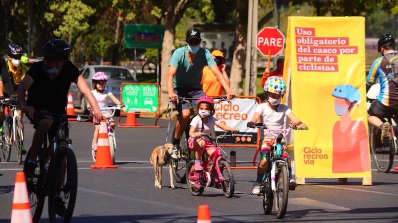 Es uno de los panoramas familiares favoritos de los fines de semana. Y cómo no, si la CicloRecreoVía cierra el paso de los vehículos motorizados en un puñado de calles, para que la usen solo quienes deseen ir a trotar, patinar o andar en bicicleta. Incluso a caminar con los perritos.