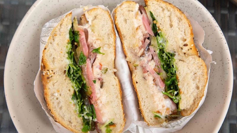 En Masa Bristro, Guerra también declara su amor por la masa madre, la que encuentras en los bagels, como el vegetariano ($ 6.500), denso, de corteza crujiente y un leve toque de ajo, que viene relleno con shitakes, ciboulette, queso y salsa tártara.