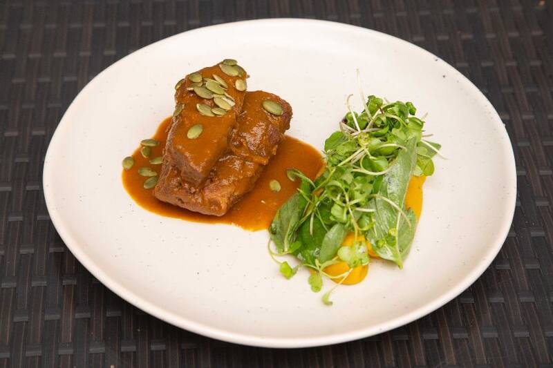 Entre los imperdibles también está el vacuno ($ 8.500), de cocción tan lenta que se parte con el tenedor y que se sirve con hummus de zapallo y hojas verdes que aportan frescor.