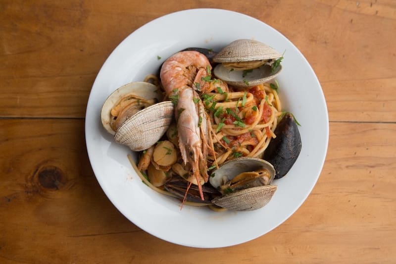 Si lo tuyo son los mariscos, ojo con el "spaguetti allo scoglio" ($ 12.990 y $ 10.990 la media porción), con todo el sabor de los productos del mar porque se cuecen en su caldo. Luego se les agrega un toque de salsa de tomates casera y mariscos enteros, algunos en su concha.
