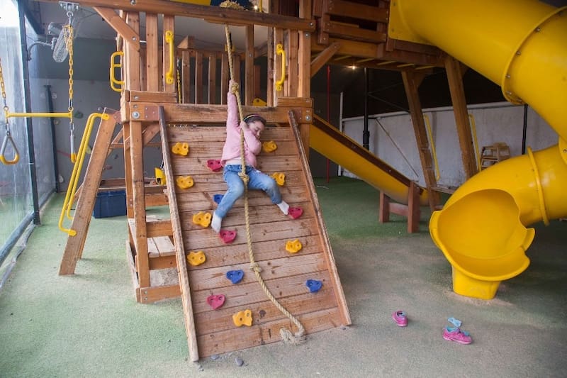 ¿Qué hay de los juegos para los niños? Mientras los adultos hacen sobremesa y toman café, pueden divertirse por horas en los columpios, resbalines, en el cajón de arena y en el mini muro de escalada que hay en el lugar.
