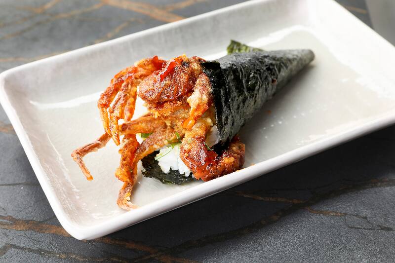 También Temakis, como el Spicy ($ 7.000), que es un conito de alga con relleno de tártaro de salmón spicy; o el Kani picante ($ 18.500), el mismo conito relleno de soft-shell crab, similar a la jaiba, en salsa karami, japonesa levemente picante, cebollín y takuan, encurtido japonés.