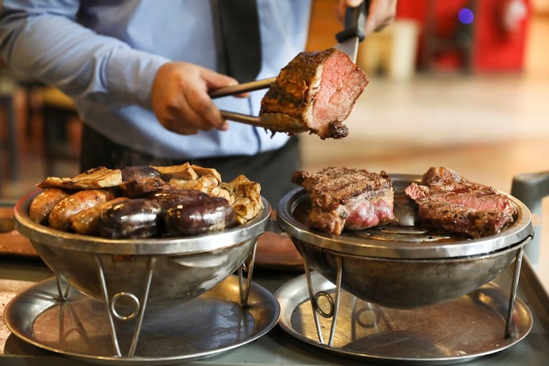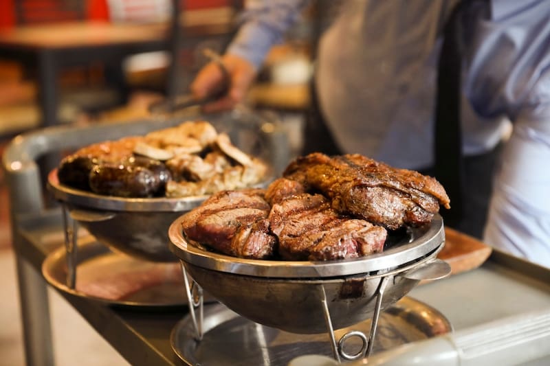 Aquí, por $ 22.900 los adultos y $ 12.000 los niños puedes probar todas las carnes que quieras, como bife ancho (lomo vetado), bife angosto (lomo liso), corazón de cuadril (asiento), colita de cuadril (punta picana), flat iron (punta paleta) y asado de tira, entre otros.