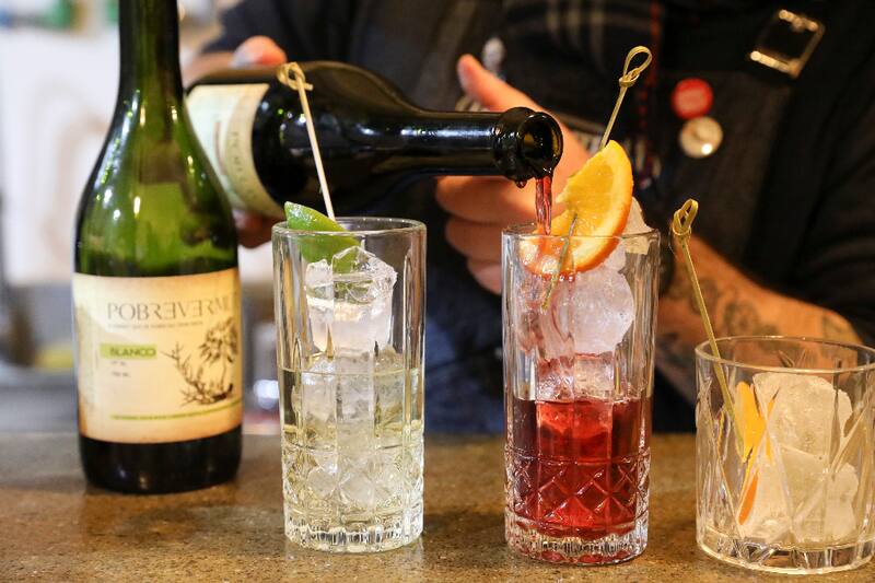 Es más, Carlos es el creador del Pobrevermut, el vermut artesanal chileno con botánicos endémicos que, a grandes rasgos, es un vino fortificado y la estrella de esta barra. Aquí lo encuentras en dos variedades: blanco y rosso.