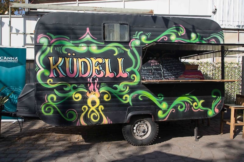 A cargo de Küdell, está María Elisa Jara, cocinera autodidacta que tiene una propuesta bien marina y casera, con platos como “la reina de la pescá” ($ 6.900), que es un sándwich de merluza frita, bien crujiente, con ensalada chilena, ají verde, mayo casera y un pan en tinta de calamar bien esponjoso por dentro.