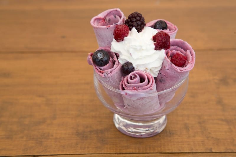 Otro imbatible son los "ice rolls" ($2.500), que se hacen en el momento sobre una plataform de metal bien helada y pueden ser de pura fruta " frutos rojos" por ejemplo, o más golosos como el de "galletas oreo" o el de "mantequilla de maní". Una delicia.
