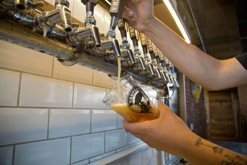 Son ocho estilos los que elaboran en Cerveza Tropera y todos los puedes encontrar en este local de Puerto Varas, en formato schop, directo del barril (desde $ 2.300).