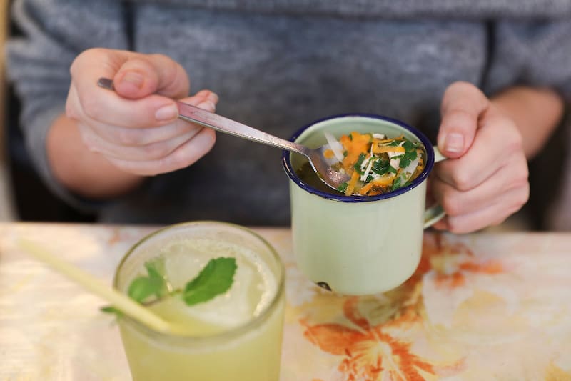 También ten en cuenta que aquí no se vende alcohol, por lo que puedes probar los jugos naturales ($ 3.000), de frutilla o mango por ejemplo; o el té helado ($ 2.000).