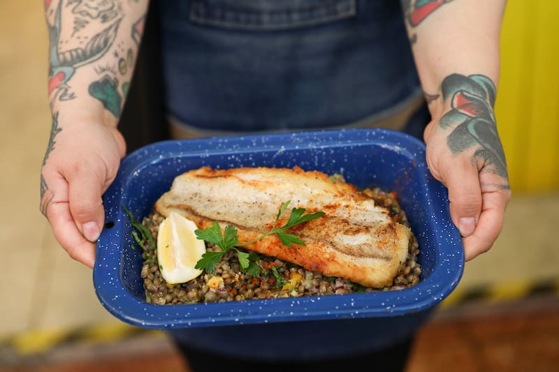 Además de panitas ($ 6.900), un bistec que llega con un arroz cremoso con zapallo; o la merluza austral ($ 9.500), con ceviche de lentejas, que puedes acompañar de ensalada chilena ($ 3.500).