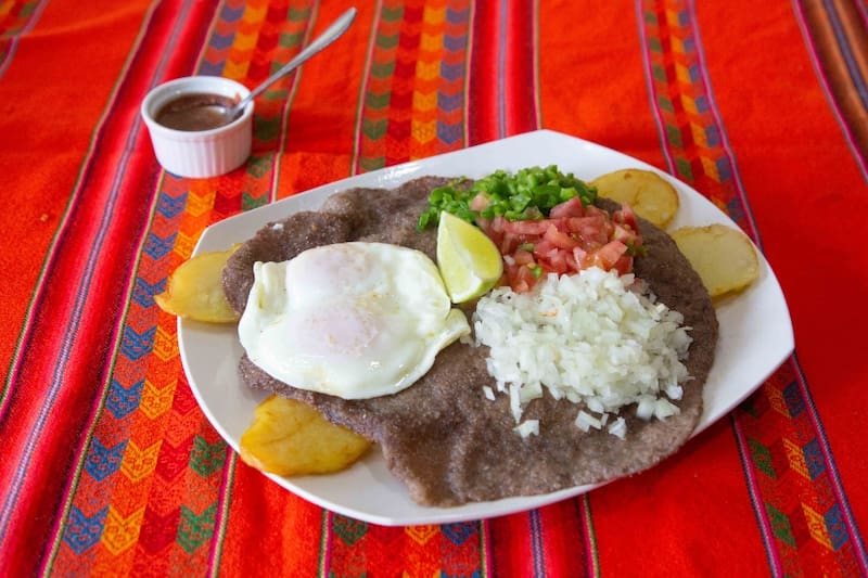 Si quieres puedes pedir de sus carta algunos clásicos de Cochabamba, como el silpancho ($ 5.000, foto inferior), que trae una sabrosa lonja delgada de carne apanada y frita, arroz, dos huevos fritos, papas hervidas y fritas y una ensalada de cebolla, tomate y pimentón cortados en cubitos.