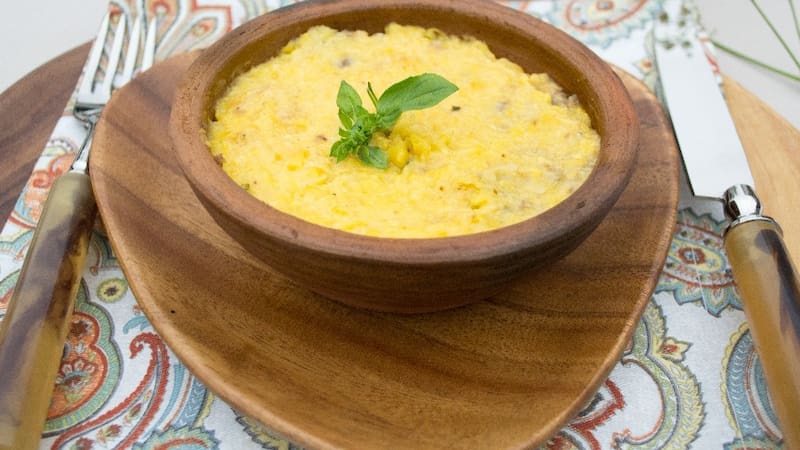 También pastel de choclo ($ 22.900 de pollo y 23.900 de carne picada, para seis a ocho personas), hecho con una pastelera sin hollejo, cremosa y ligada con una posta jugosa o pollo.