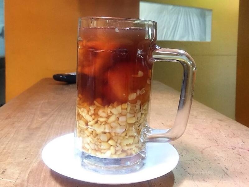 Lo sirven con suficiente mote y dos mitades de huesillos sin cuesco, y con bastante jugo dulce y bien helado.