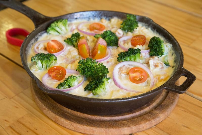 O las "Carbonara" ($ 10.900), que son deshuesadas y vienen con una crema con queso, pasta y verduras como brócoli. Alcanza fácil para tres personas.