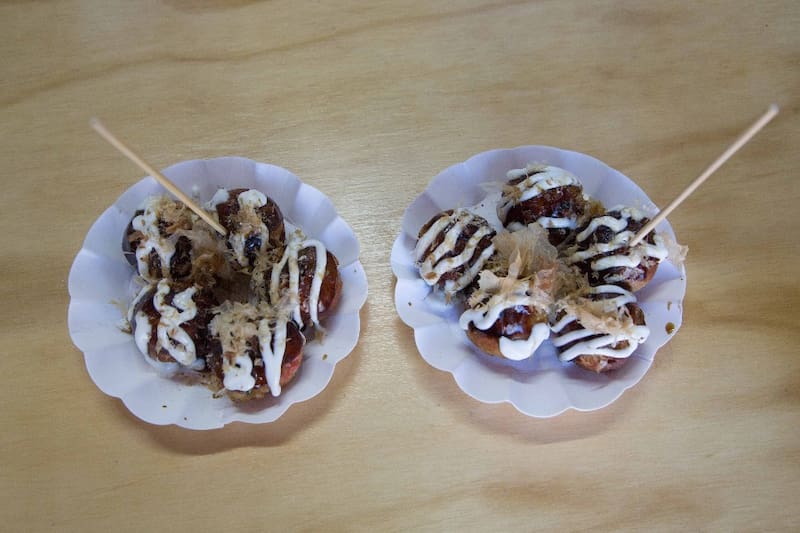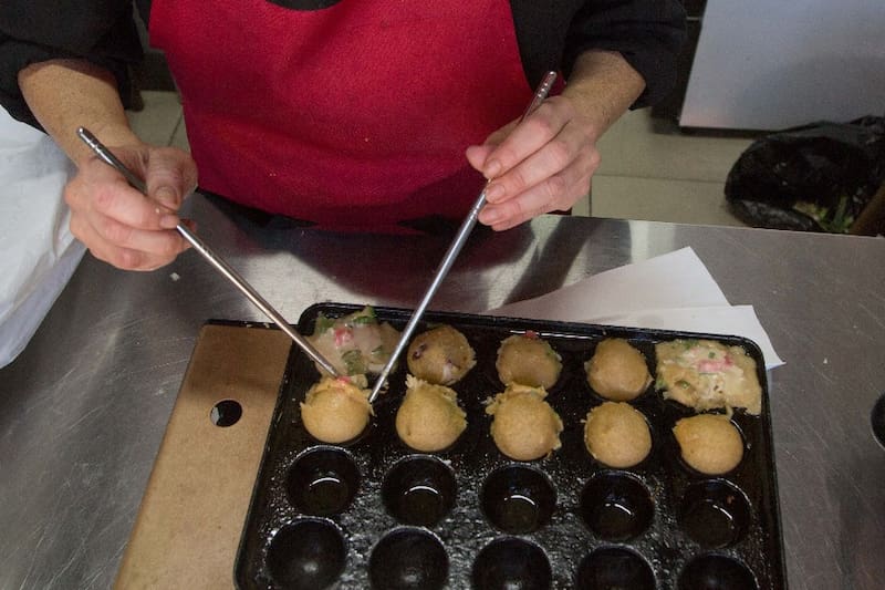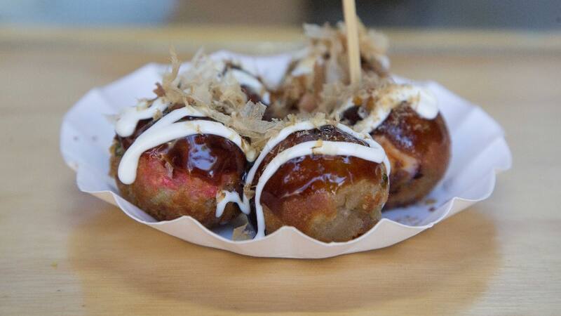 Su plato fuerte es el takoyaki, las bolitas de harina de trigo que pueden ser rellenas de pulpo o camarón, clásicas de la cocina callejera japonesa.