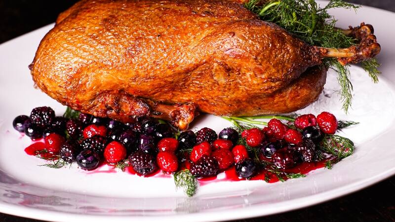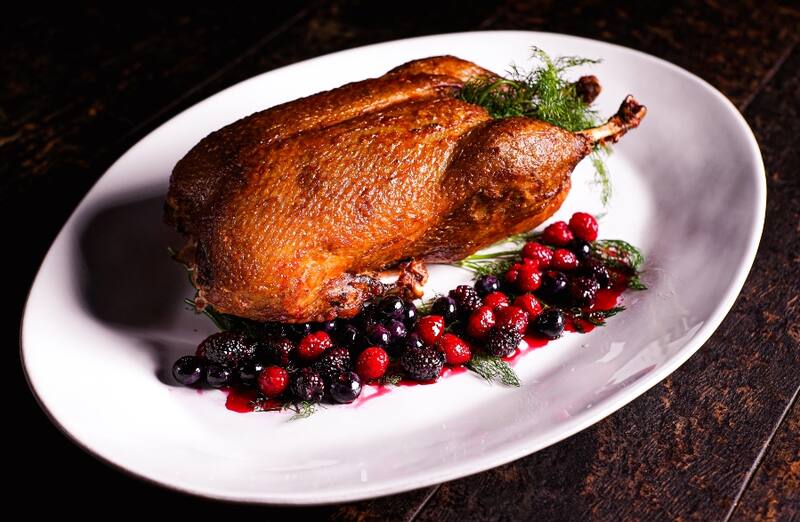 Las que consisten en distintas preparaciones que se encargan con anticipación y que se retiran en el local, como un pato asado entero con frutos del bosque, tierno por dentro y de piel crujiente. Cuesta $110.000, pesa alrededor de 2,5 kilos y alcanza para cuatro o cinco personas.