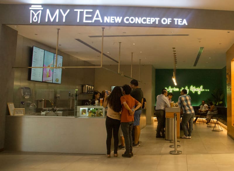 Frente a la entrada, en el primer piso, encontrarás el local de My Tea, de estilo moderno y bien minimalista.