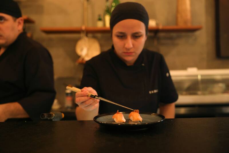 Otra alternativa podría ser sentarse en la barra, para ver in situ cómo se hacen los Usuzukuri, la técnica tradicional japonesa utilizada para servir sashimi, como el Sakana ($ 16.200), del pescado del día, con aderezo al estilo Naoki, cebollín y picante a elección.