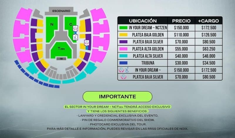 Puedes ver a continuación las gráficas con las ubicaciones del show de NCT Dream en Chile 2023 y sus respectivos precios.