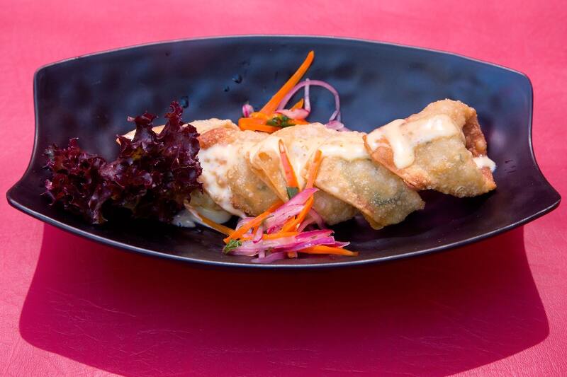 Y si eres amantes de los wantán, tienes que probar el "wonton criollo" ($ 6.900), con cinco porciones perfectamente fritas y rellenas con pollo, criolla, crema de tigre, puré de camote y cilantro.
