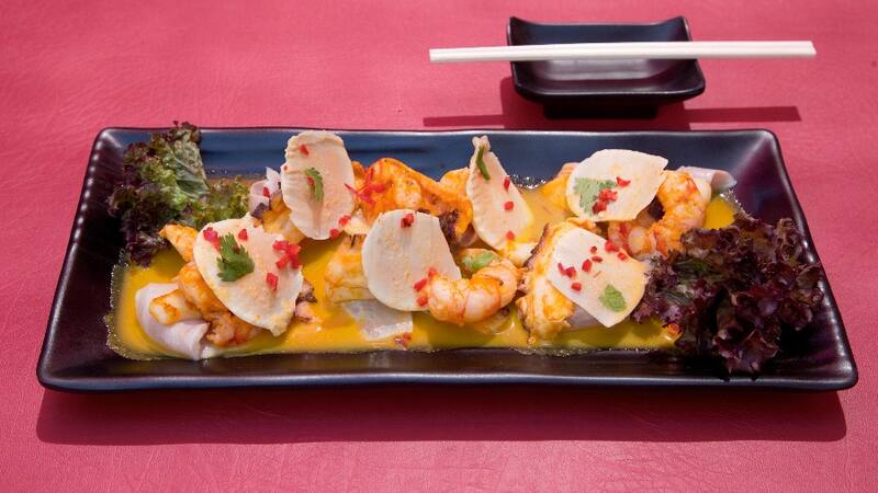 Por ejemplo, está el "tiradito mixto" (en la foto principal, $ 10.800), con pescado del día blanco, pulpo, camarón, calamares grill, locos cortados en finas capas y puestos encima, y crema de ají amarillo. Una porción que además de sabrosa, es contundente, perfecto para dos.