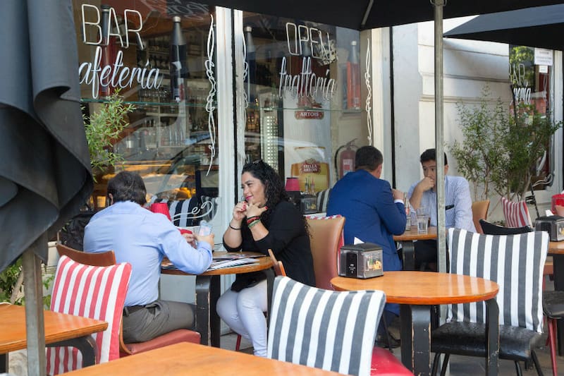 La calle Isidora Goyenechea, en el barrio El Golf, fue la elegida por la cadena argentina La Panera Rosa para abrir su primer local en Chile.