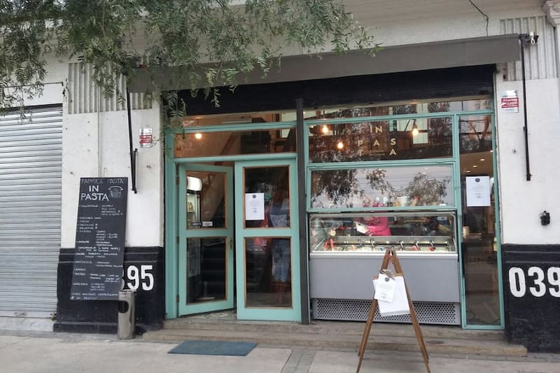 In Pasta es un pequeño local, con emporio y mesas en la terraza que da hacia la calle de Av. Santa Isabel en barrio Italia.