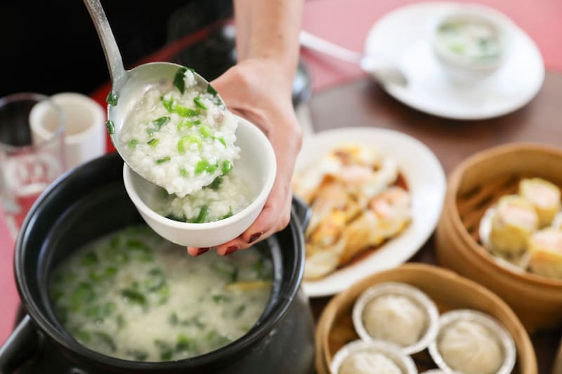 En primer lugar, pedimos Congee ($ 4.500), una olla -literal- de una sopa que se hace a partir de un arroz muy suave que se deshace durante la cocción, con carne y verduras, clásica a la hora del desayuno cantonés.