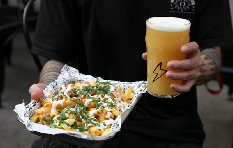 Otra de las características de los beergarden y que encuentras aquí es su variedad deopciones para comer, con tres cocinas distintas para elegir.
