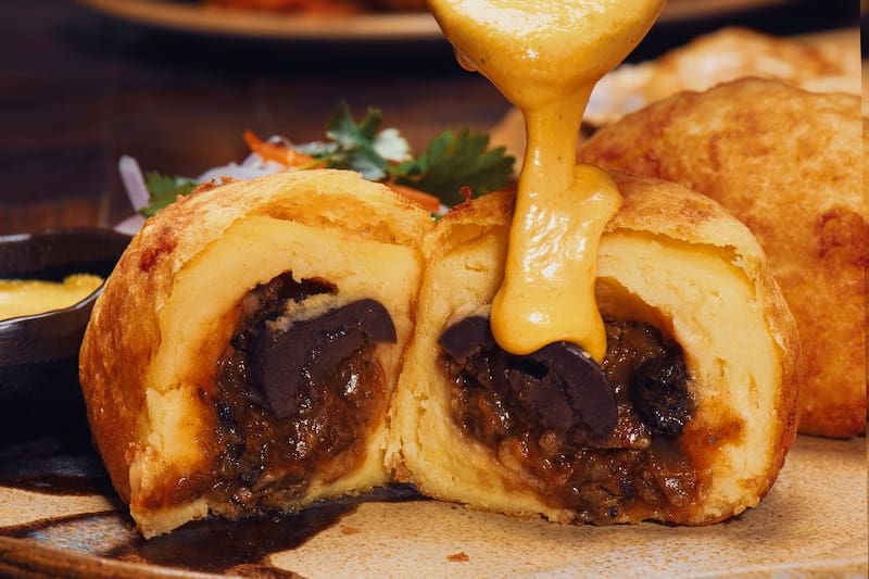 Más todavía si pides para empezar el Piqueo Doña Pancha ($ 29.800, foto superior), que viene con un tamalito de choclo verde y alcachofa; y una papa rellena, hecha de una masa de papa amarilla peruana con huevo y un toque de harina, más un relleno de un corte de asiento, salsa criolla y huancaína.
