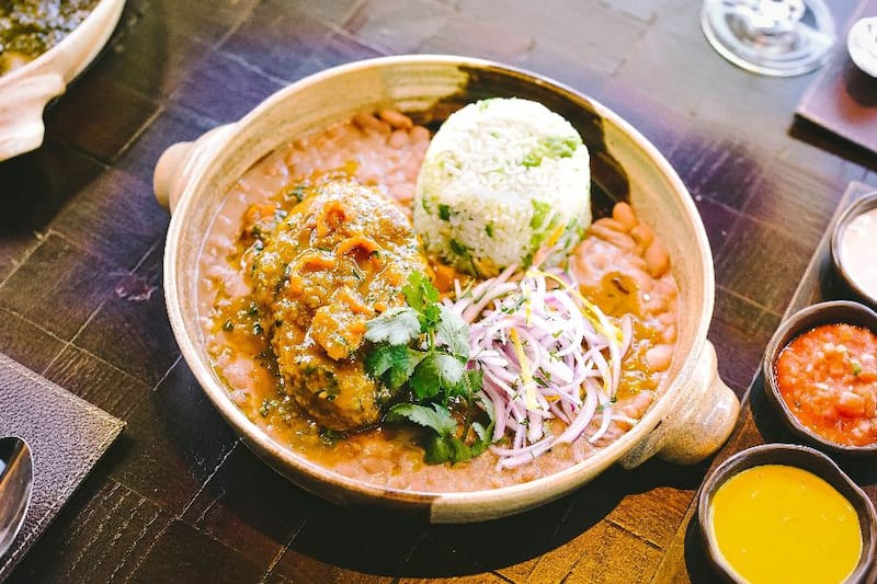 Si se trata de cocina criolla, prueba el seco de cordero norteño ($ 23.800), que es un cordero cocido por horas, para el que necesitarás sólo cuchara para partirlo, que viene con un guiso de frijoles y arroz arvejado.