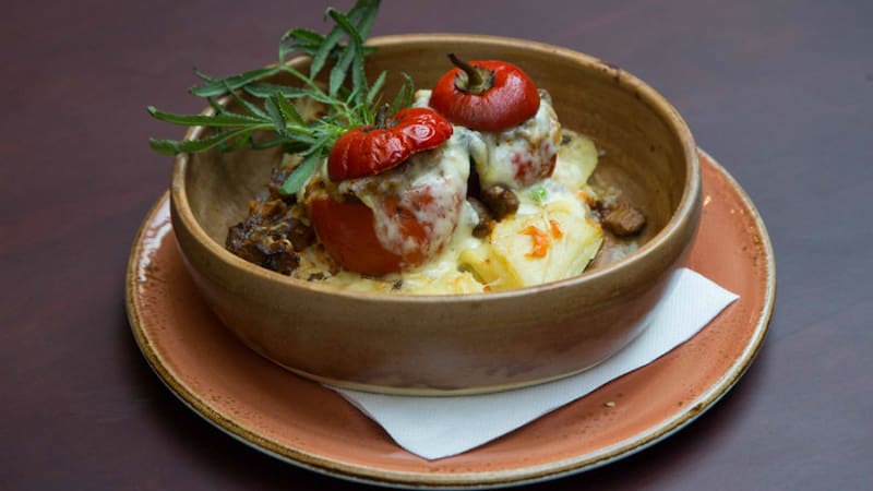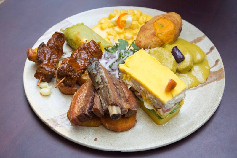 Parte con alguno de los "piqueos", bien generosos, como el "piqueo doña pancha" ($ 21.800), que incluye un tamalito de choclo verde y alcachofa, una papa rellena de ensueño, choclo a la huancaína, causa limeña, anticucho, chicharrón, camote y salsa criolla.